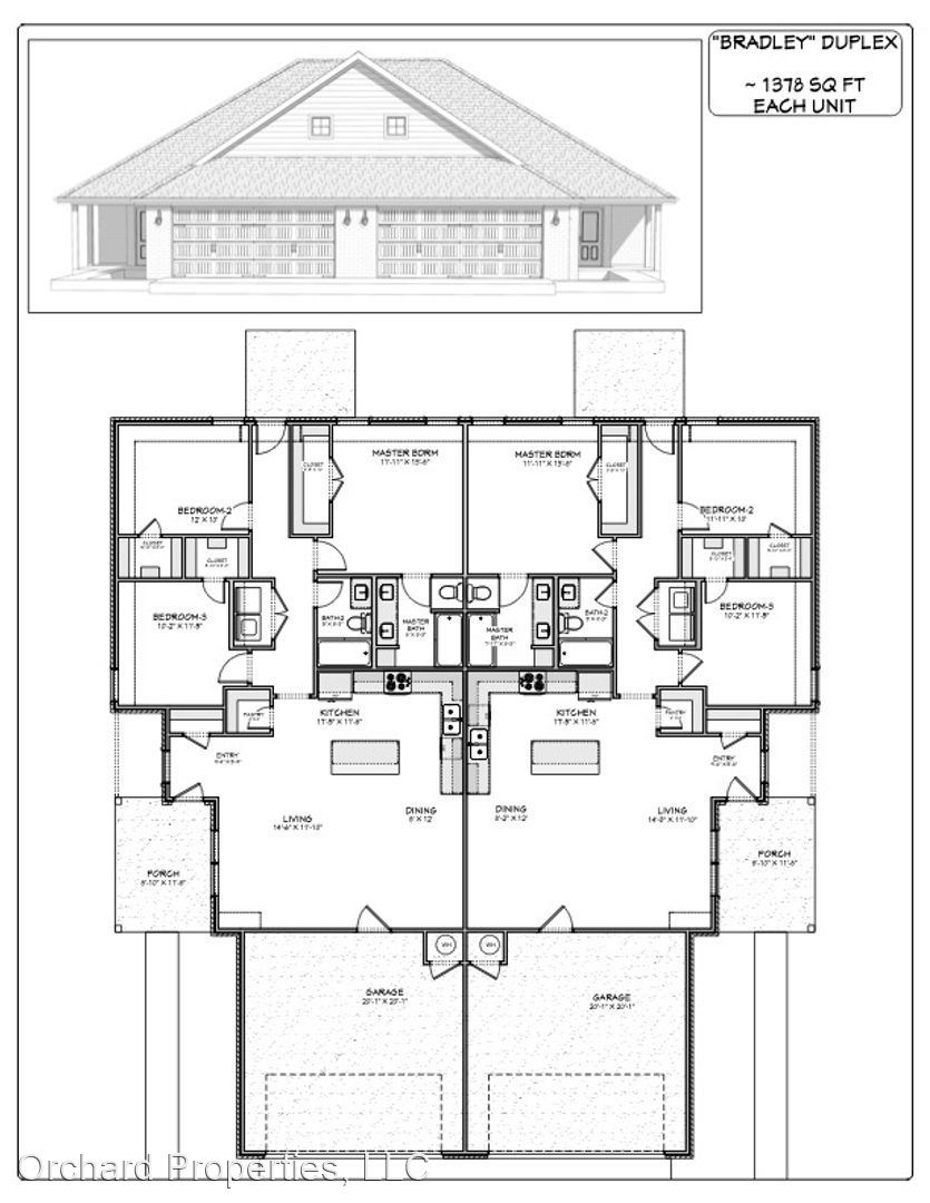 Tontitown | Bradley Plan- 3 Bed/ 2 Bath w/ 2 Car Garage | Brand New! - This 3 bed/ 2 bath/ 2 car garage single-level duplex features an open-floor plan with high-end finishes you will enjoy finishes such as crown molding, stainless steel appliances, and much more! If interested, apply today! Feel free to reach out with any questions. We look forward to assisting you make the Bradford Duplexes in Tontitown your new home. Pet Policy: $300 non-refundable pet deposit when applicable + $25/mo pet rent; Two pet limit per unit, 50 pounds maximum for 1 pet, if two pets combined weight must not exceed 35 pounds. No vicious breeds allowed. Additional refundable security deposit is required if cat is not declawed. Max of 2 pets per unit. Please check with office to confirm if pet is approvable. Orchard Properties reserves the right to refuse certain breeds. Applicants should check with property management prior to applying if they feel their pet might be questionable. In the event an animal is not approved, applications fees remain non-refundable. This is a stock unit for the Bradley. Unit assigned may not be this specific unit. Questions? Please give us a call!