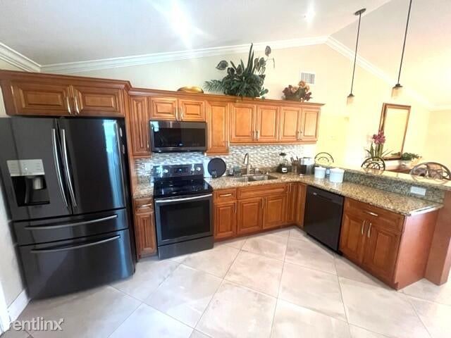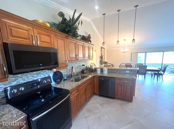 Spacious and completely furnished 3 bedroom home with golf course view in Lone Pine Estates. Available for annual or seasonal lease. Large open living area with dining table for eight. Fully applianced kitchen; granite countertops; bar stool seating. Split bedrooms, master bath has shower stall. Courtesy of Coldwell Banker/BR. Two car attached garage.